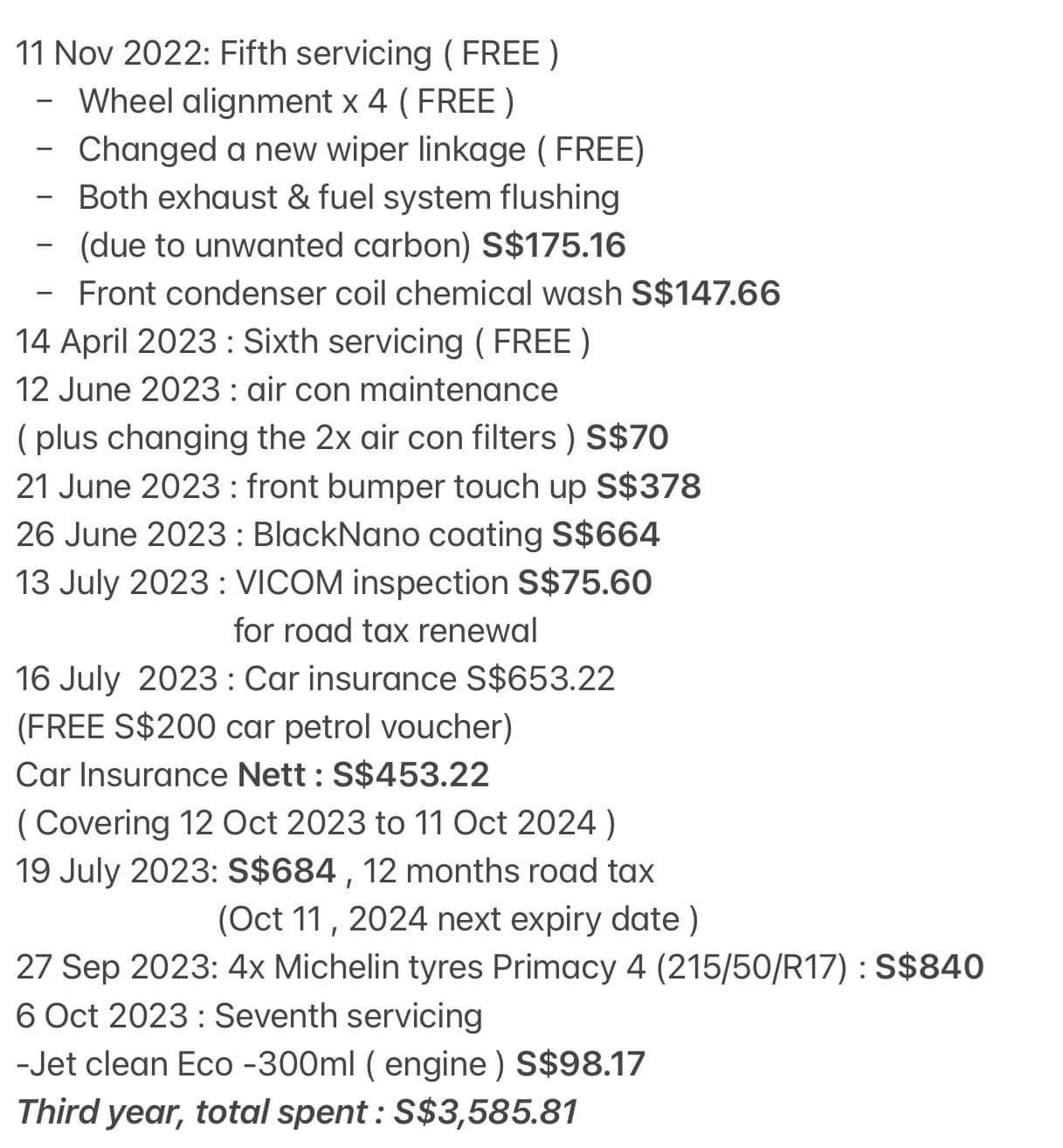 3 years expenses (Honda Civic 1.5 Turbo)